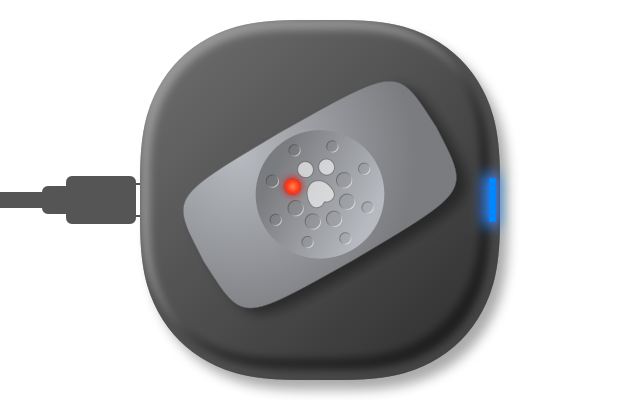 Plug the recharging pad into any USB socket (say, a phone charger or laptop).
